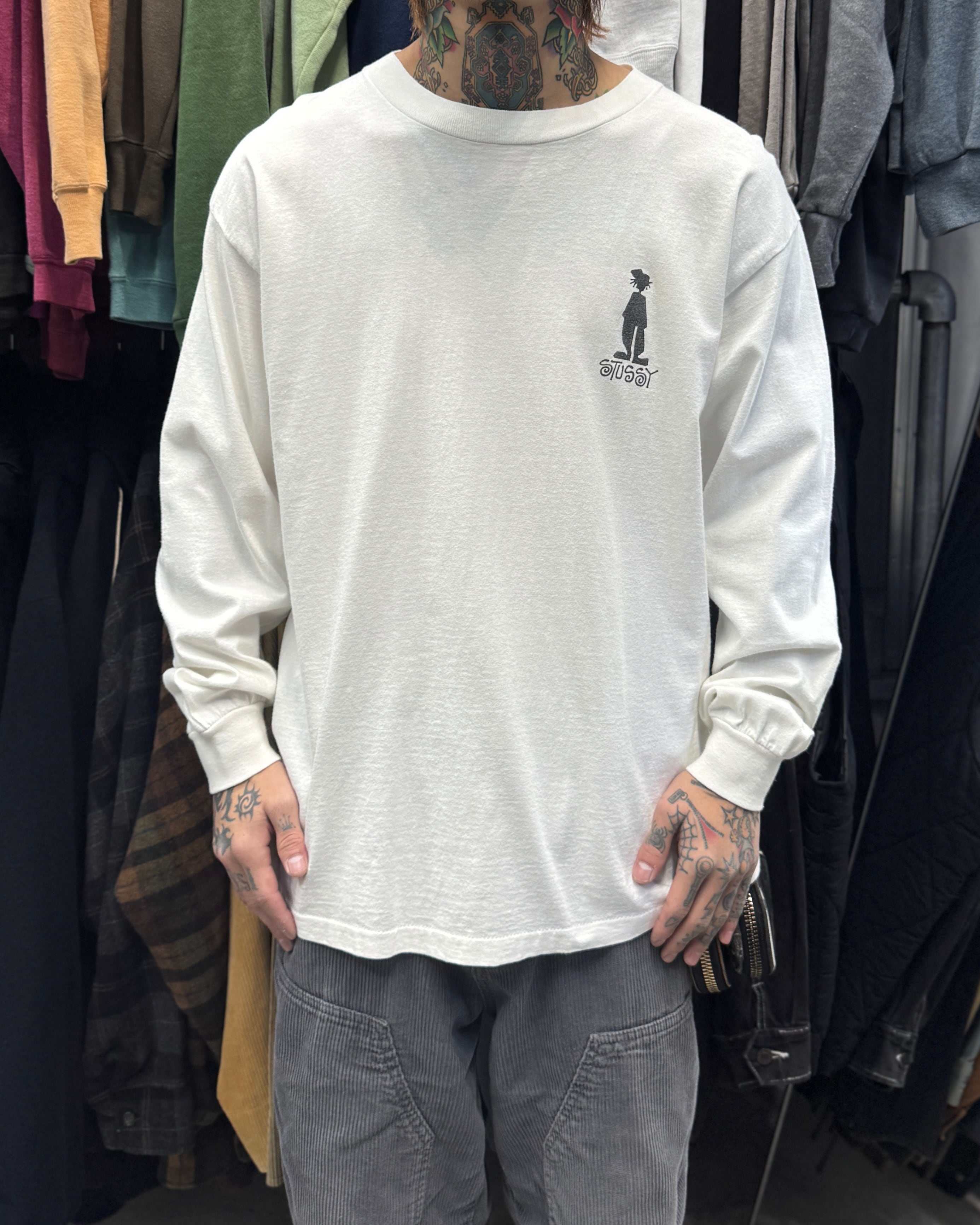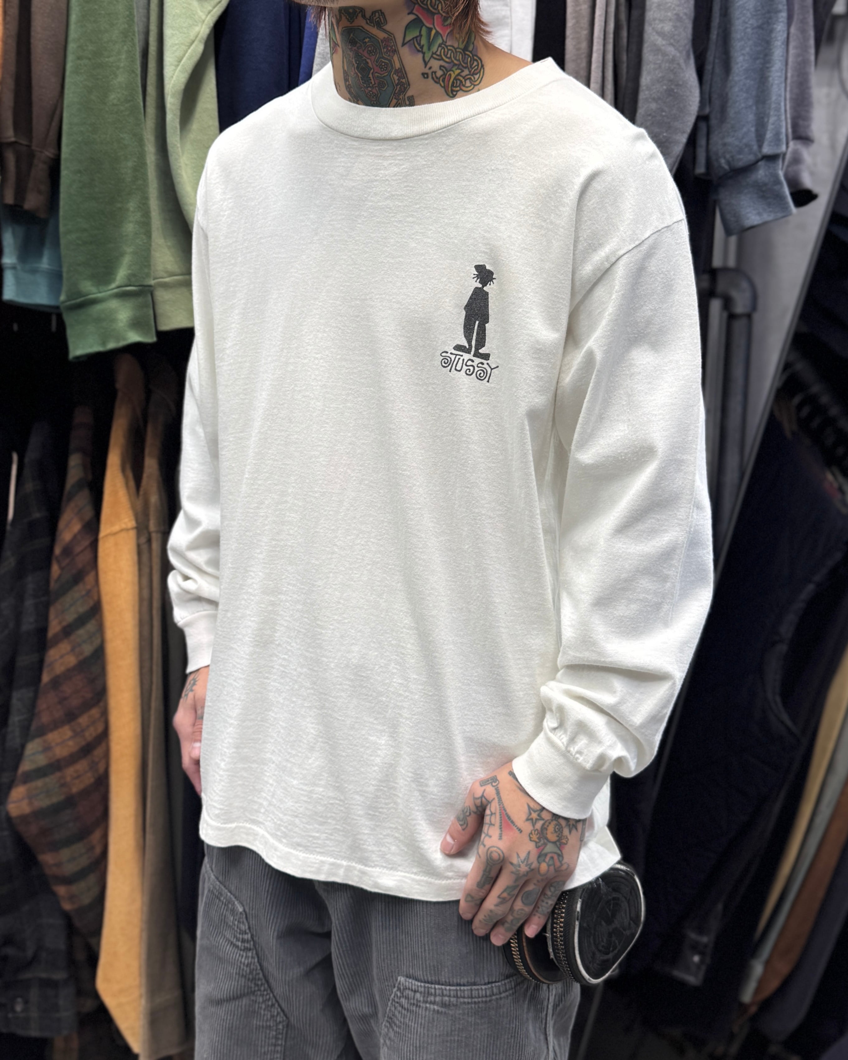 90’s old stussy “Shadow Man” Long Sleeve Tee “白タグ” “シャドーマン”【高円寺本店】