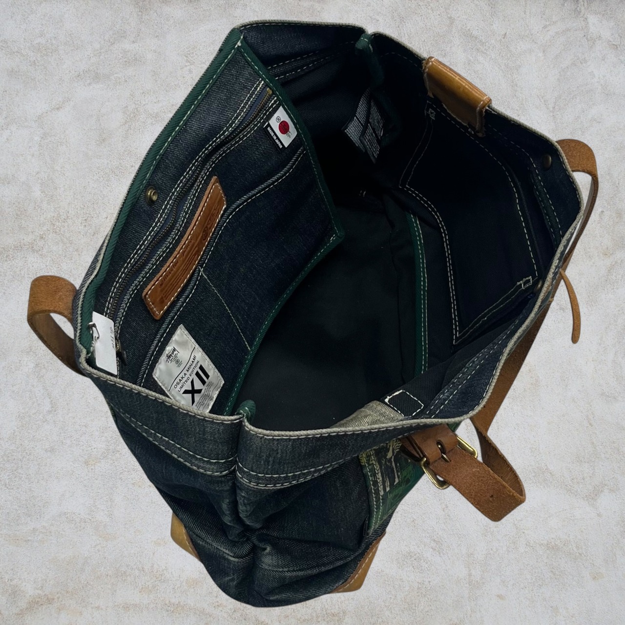 00's old stussy × MASTER-PIECE Design Denim Tote bag ''宗教柄'' ''OSAKA MINAMI LIMITED''【Other Side店】