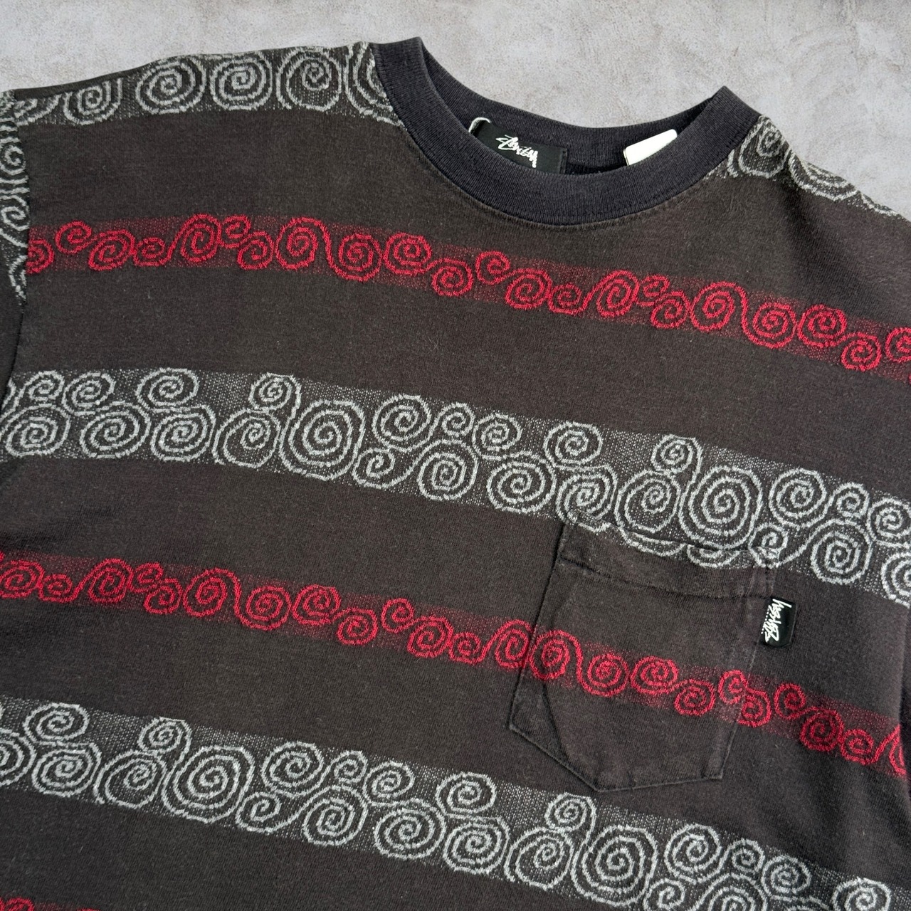 80’s~90’s old stussy Jacquard Pocket Tee “黒タグ” “総柄” “ボーダー” “ジャガード”【高円寺本店】