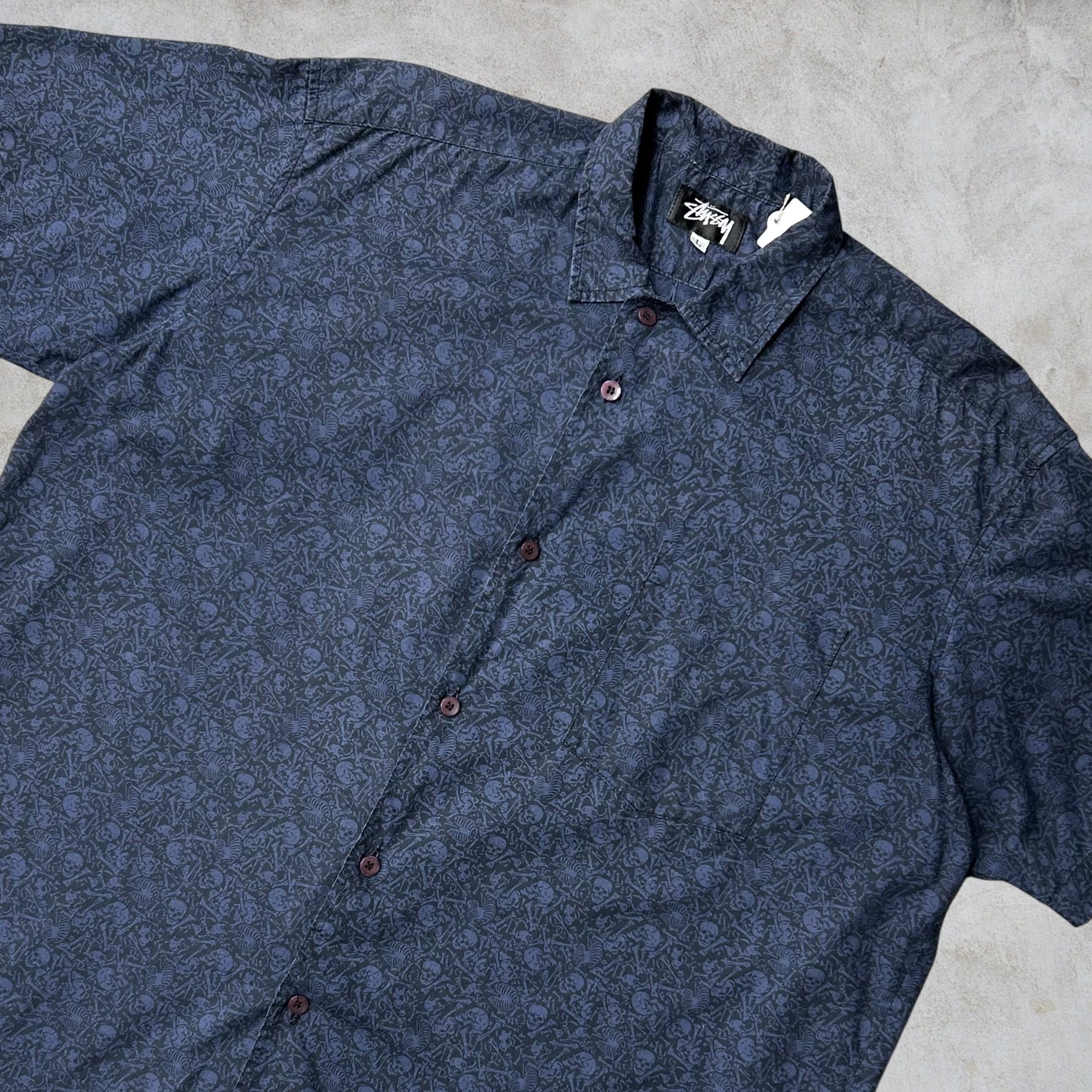 【Special‼︎】 80's~90's old stussy Skull Design Short Sleeve Shirt ''総柄'' ''黒タグ''【高円寺本店】