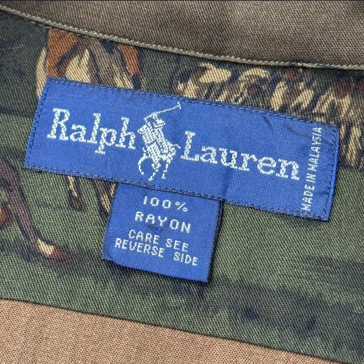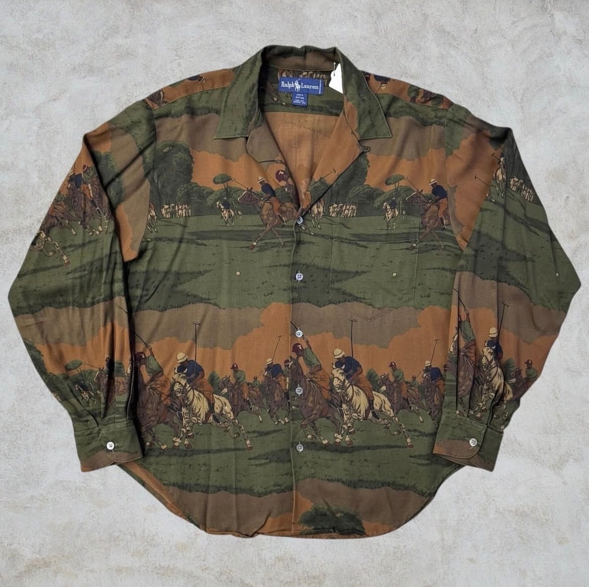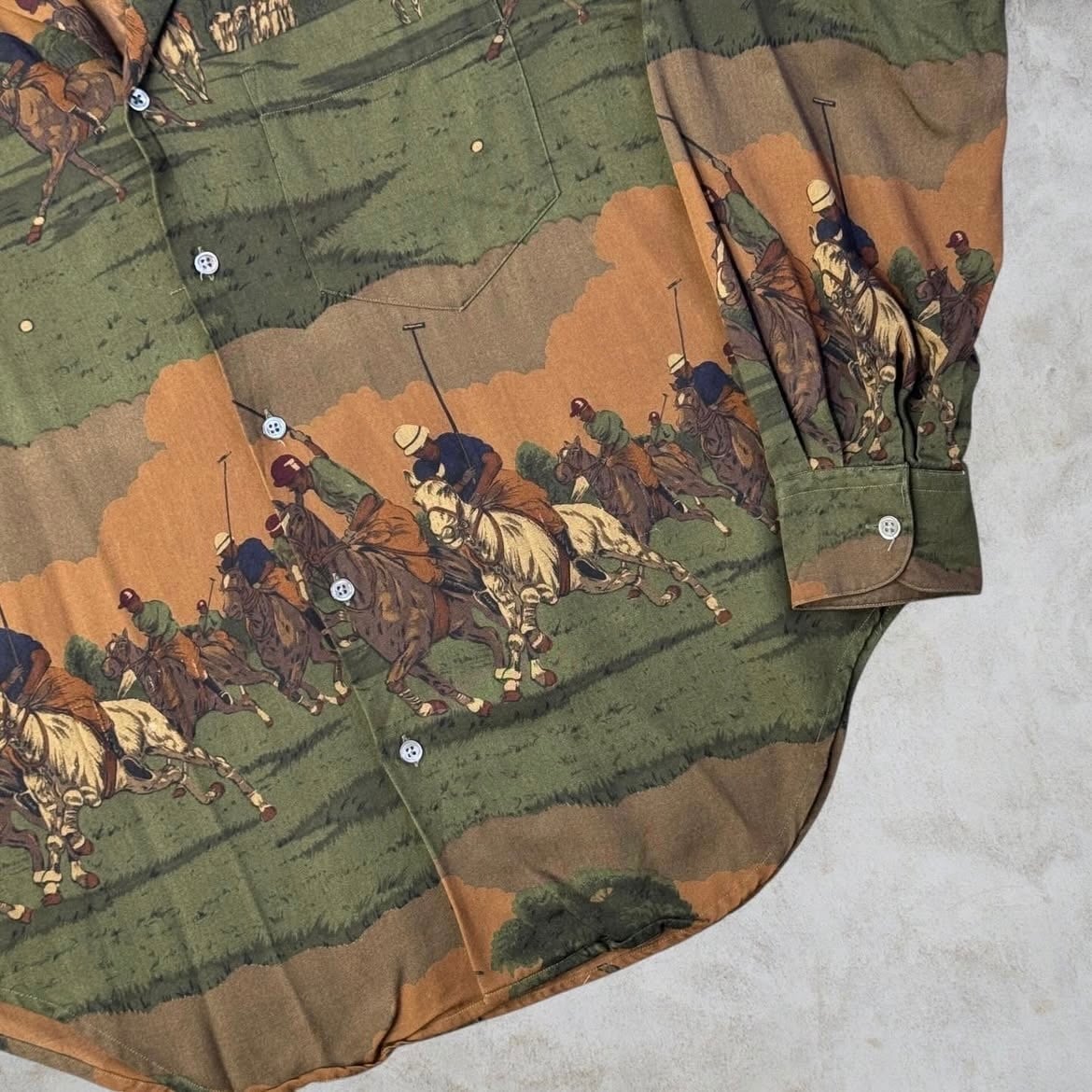 90's Ralph Lauren illustrated Open Collar Shirt ''乗馬柄'' ''100% RAYON''【Other Side店】