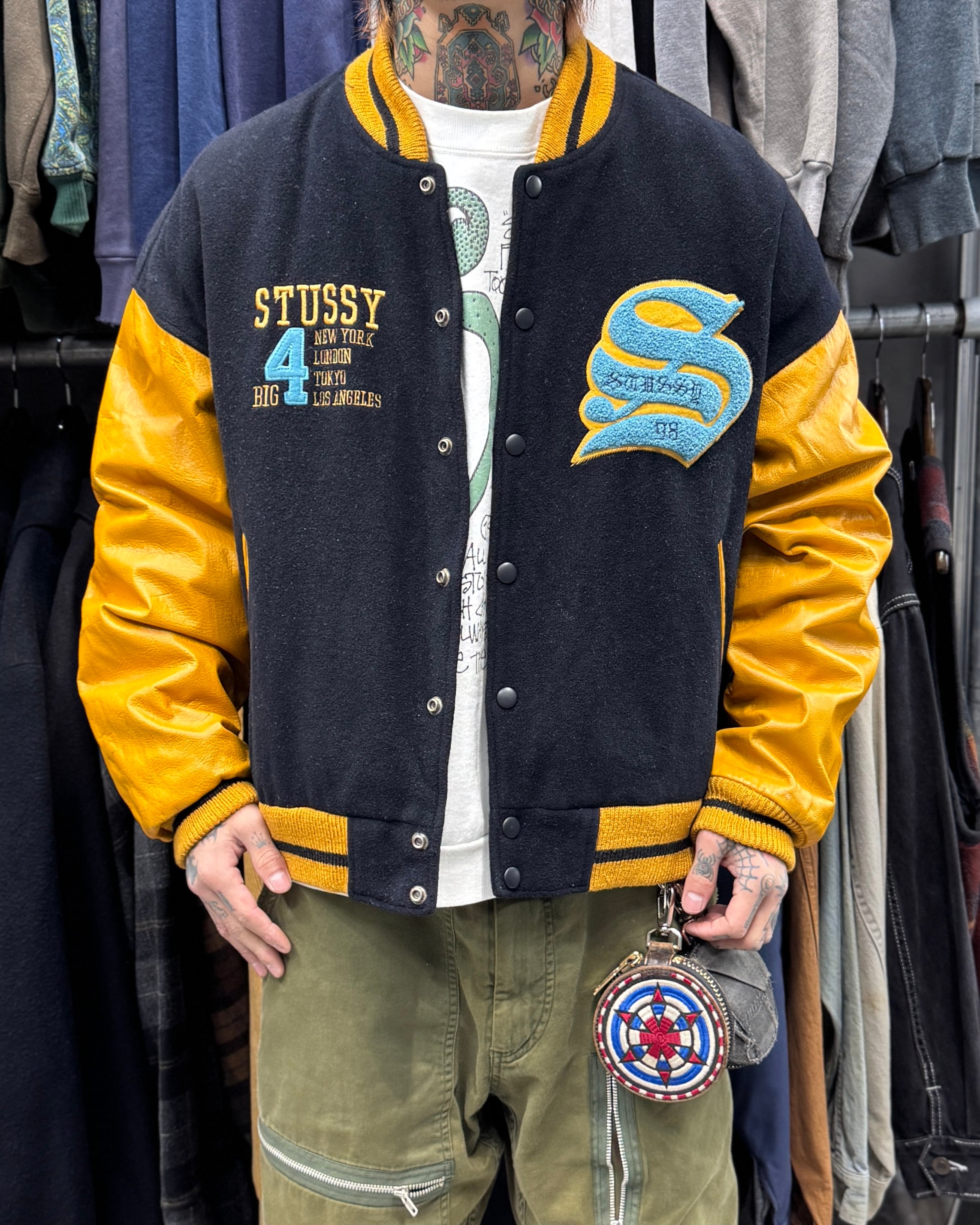 【Special!!】90’s old stussy Varsity Jacket “BIG 4” “スタジャン”【高円寺本店】