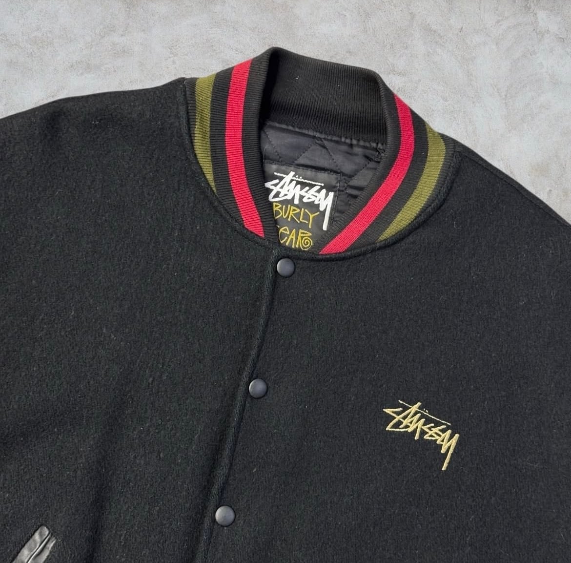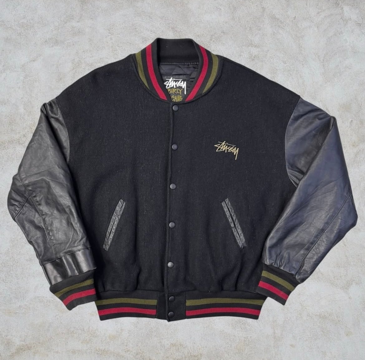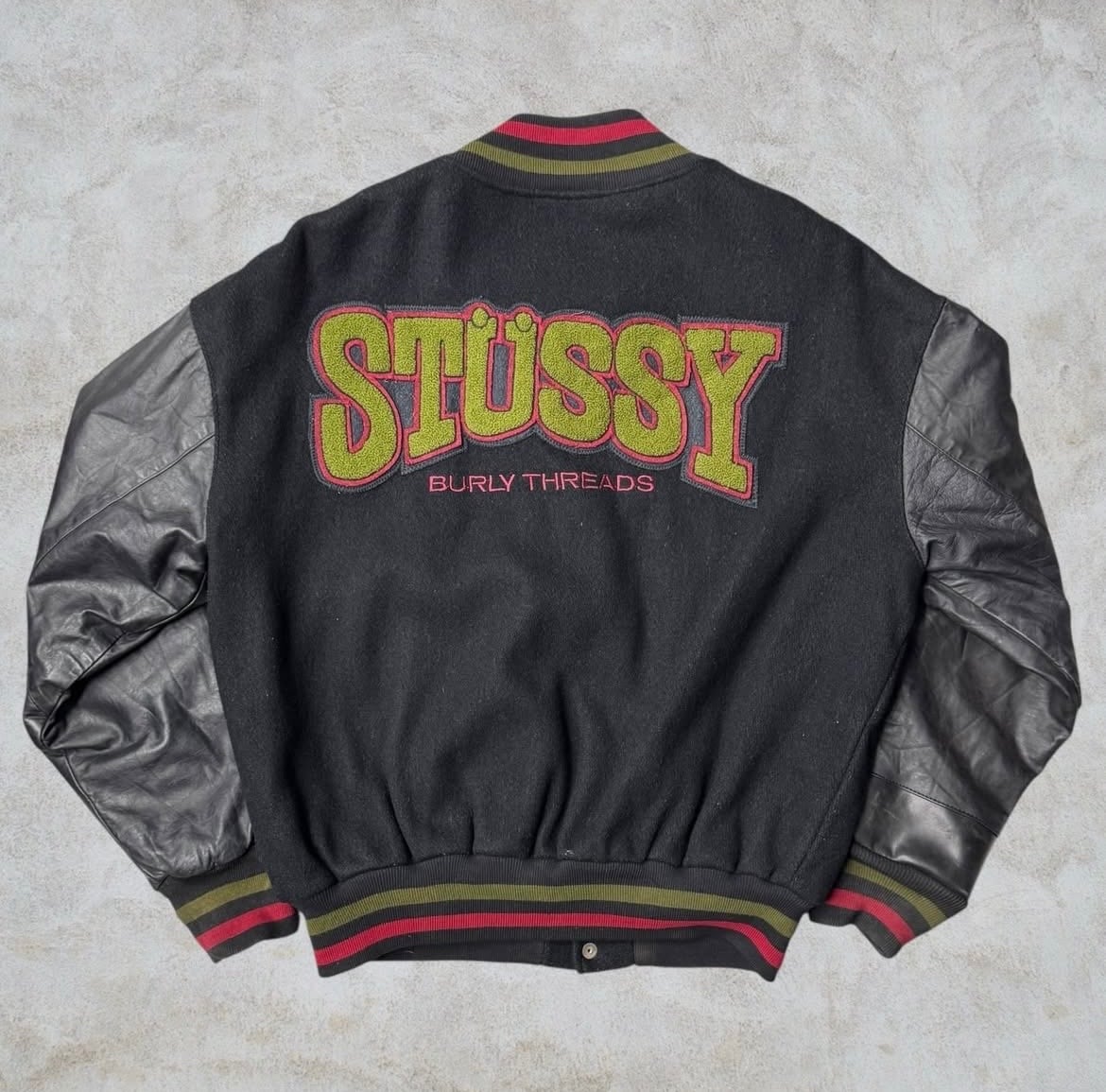 【Special!!】80’s~90’s old stussy ”BURLY THREADS” Varsity Jacket ”スタジャン” ”黒タグ” ”Burly Gear”【高円寺本店】