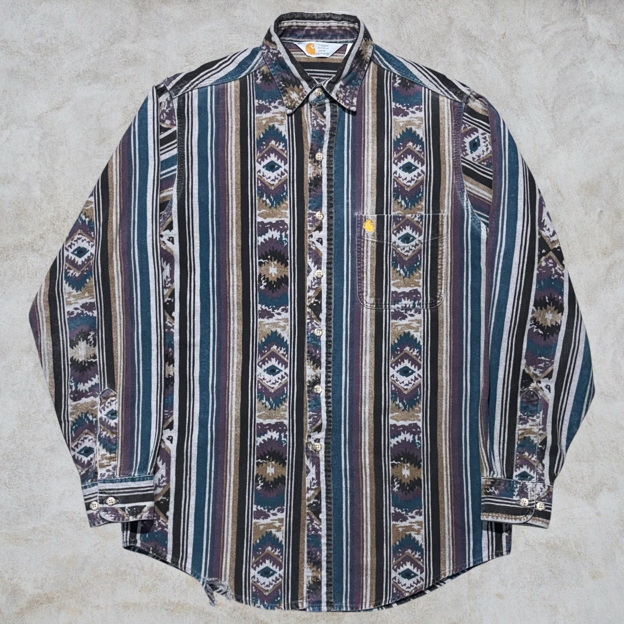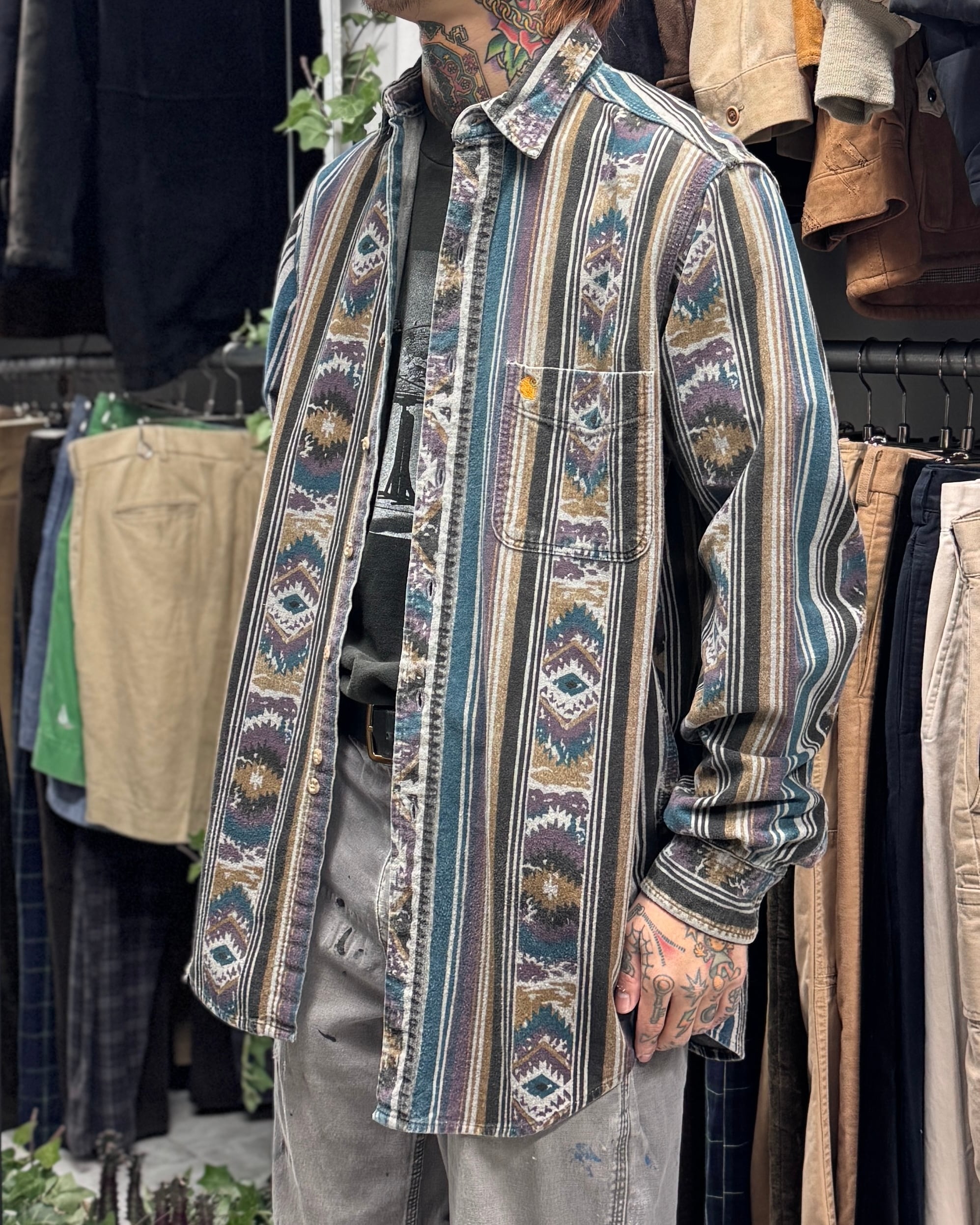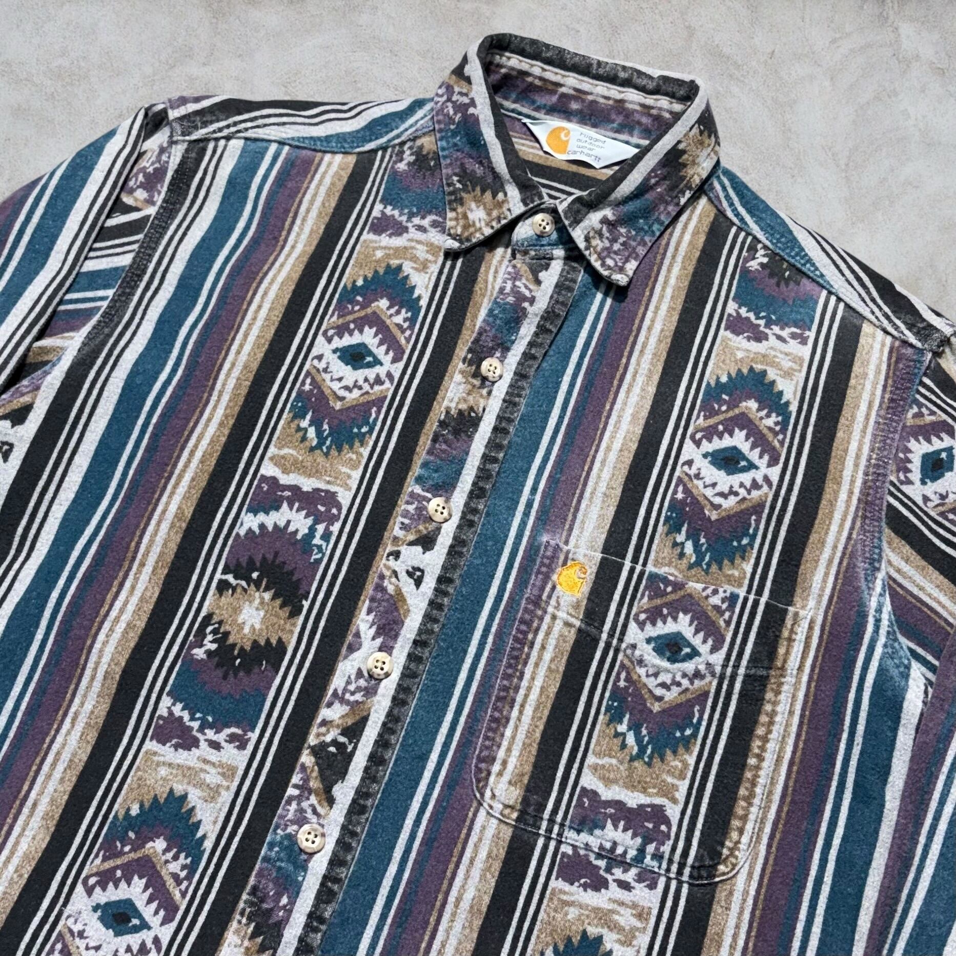 80’s~90’s Carhartt Nativemulch Stripe Flannel Shirt【下北沢店】
