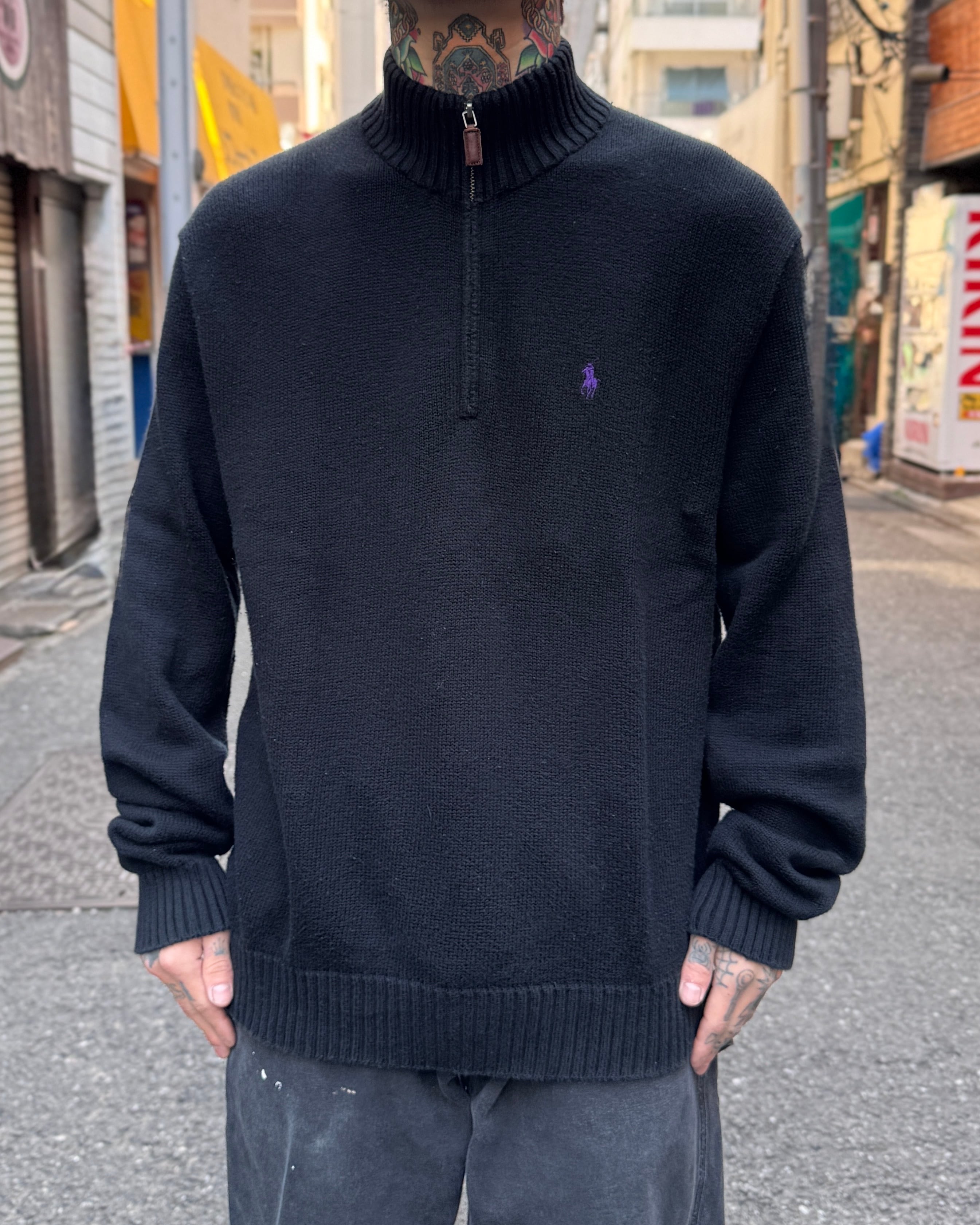 90's~00's Polo by Ralph Lauren Half Zip Cotton Knit ''BLACK''【Other Side店】