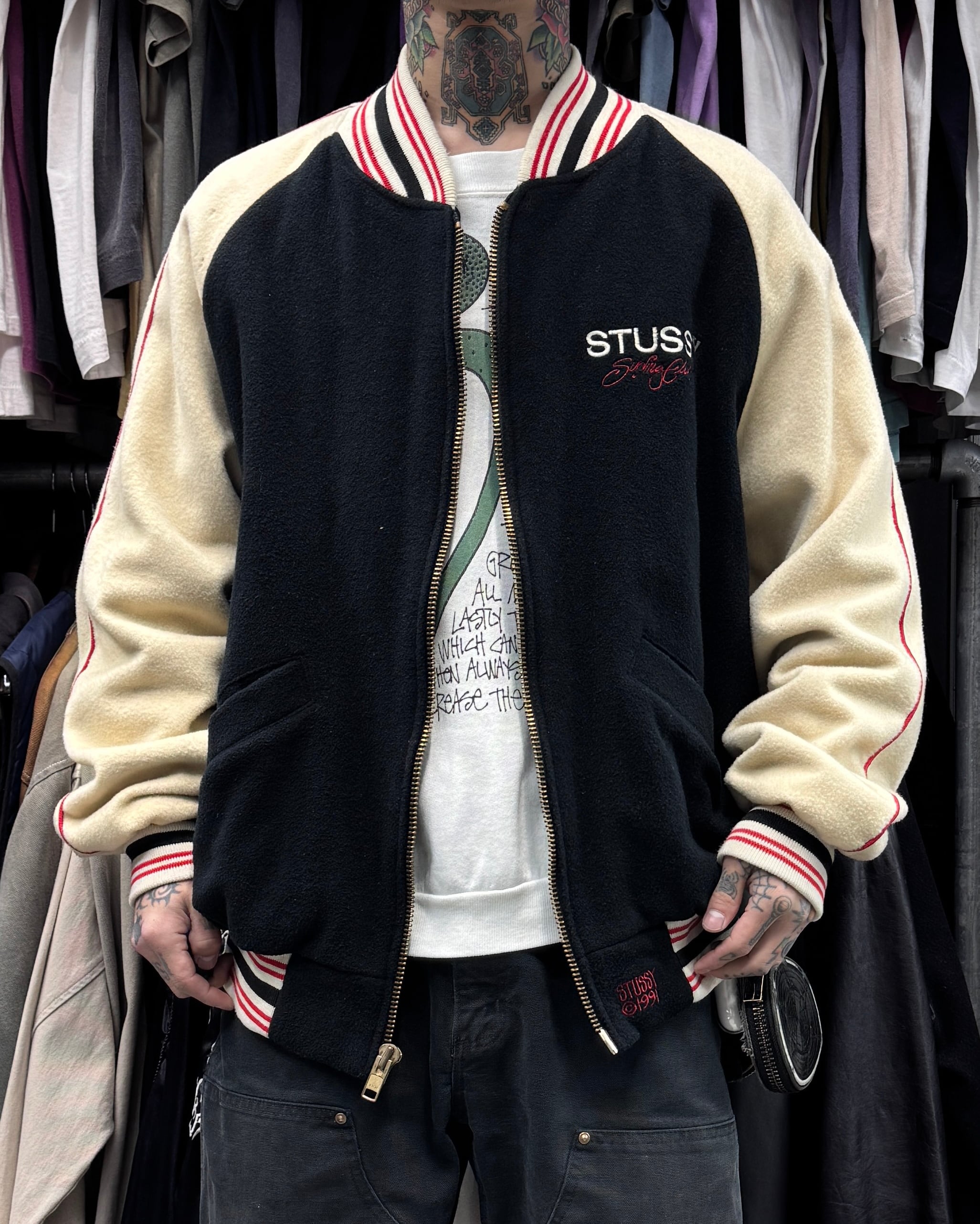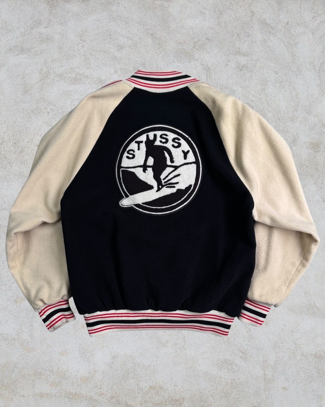 【Special!!】90’s old stussy Wool Varsity Jacket “©︎1991” “Surfing Club” “黒タグ” “BURLY GEAR” “スタジャン” 【高円寺本店】