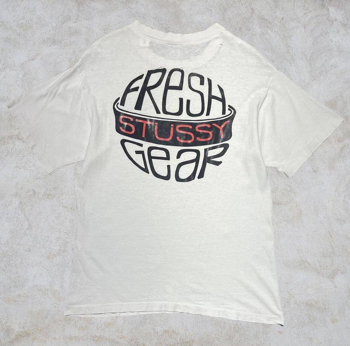 80~90’s old stussy “stussy fresh gear” Design Tee “襤褸”黒タグ