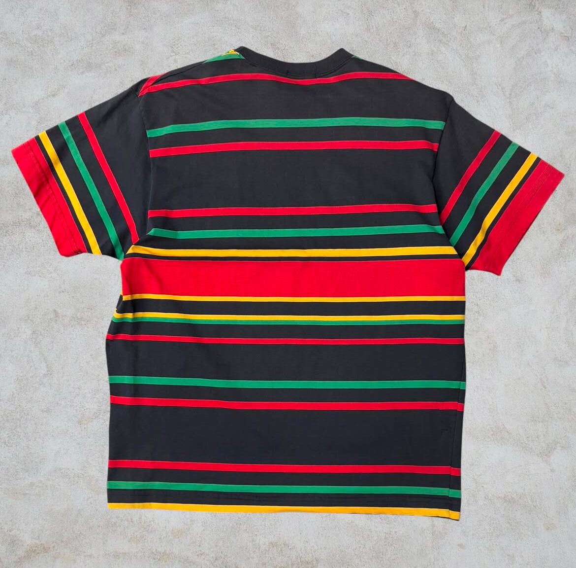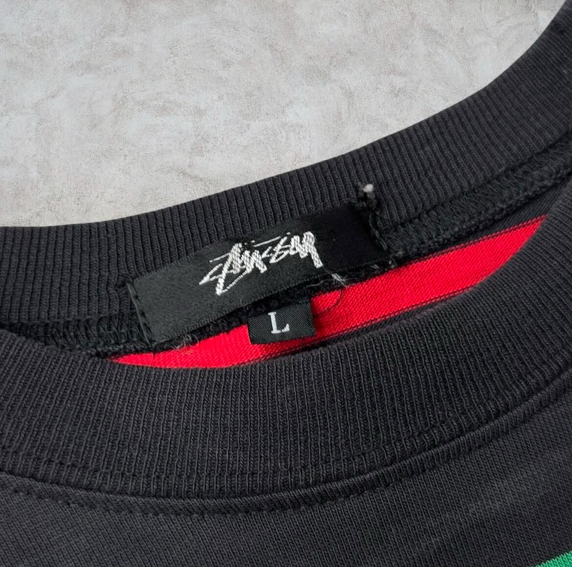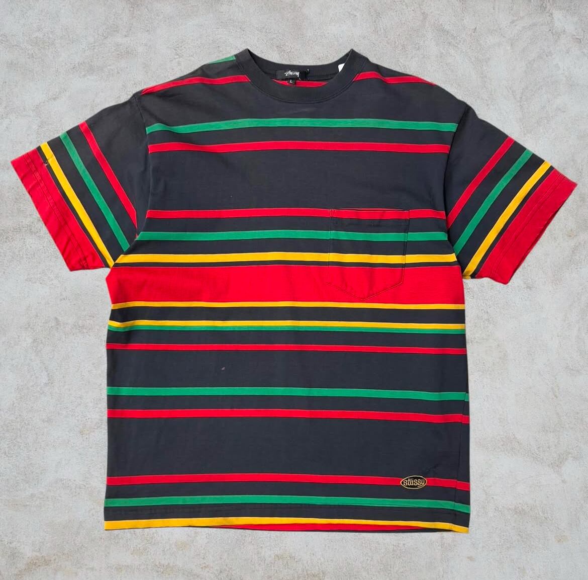 80’s old stussy Border Design Pocket Tee “黒タグ” “ボーダー” “総柄” “ラスタ”【高円寺本店】